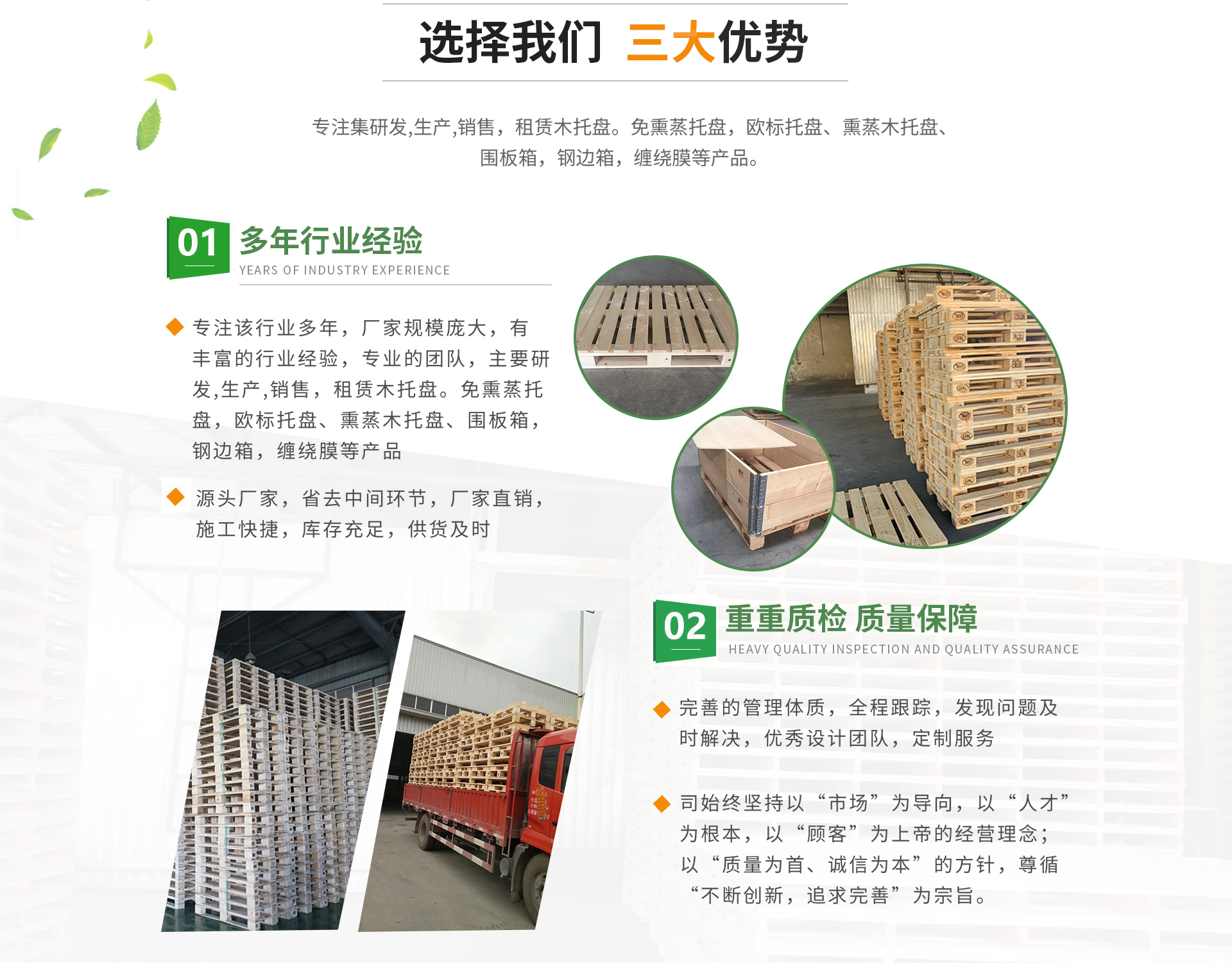 蕪湖奔騰包裝股份有限公司坐落于滬渝高速灣沚出口處3公里,距離灣沚高鐵站6公里,蕪宣客運(yùn)機(jī)場5公里,交通十分便利。我公司是專注集木托盤研發(fā),生產(chǎn),銷售,租賃的綜合服務(wù)商。本公司生產(chǎn)的免熏蒸托盤,歐標(biāo)托盤、熏蒸木托盤、圍板箱,鋼邊箱等產(chǎn)品遠(yuǎn)銷海內(nèi)外。公司本著“以質(zhì)量求生存,以信譽(yù)謀發(fā)展,以服務(wù)拓出路”的服務(wù)經(jīng)營理念;重視產(chǎn)品質(zhì)量和服務(wù),為用戶著想。根據(jù)客戶需求,及時(shí)送貨。公司始終堅(jiān)持以“市場”為導(dǎo)向,以“人才”為根本,以“顧客”為上帝的經(jīng)營理念;以“質(zhì)量為首、誠信為本”的方針,尊循“不斷創(chuàng)新,追求完善”為宗旨。本著生產(chǎn)廠家,減少中間流通環(huán)節(jié)的原則,讓利于每位客戶朋友。我們的產(chǎn)品價(jià)格合理,質(zhì)量過硬,真誠歡迎各方客商前來業(yè)務(wù)洽談與合作。